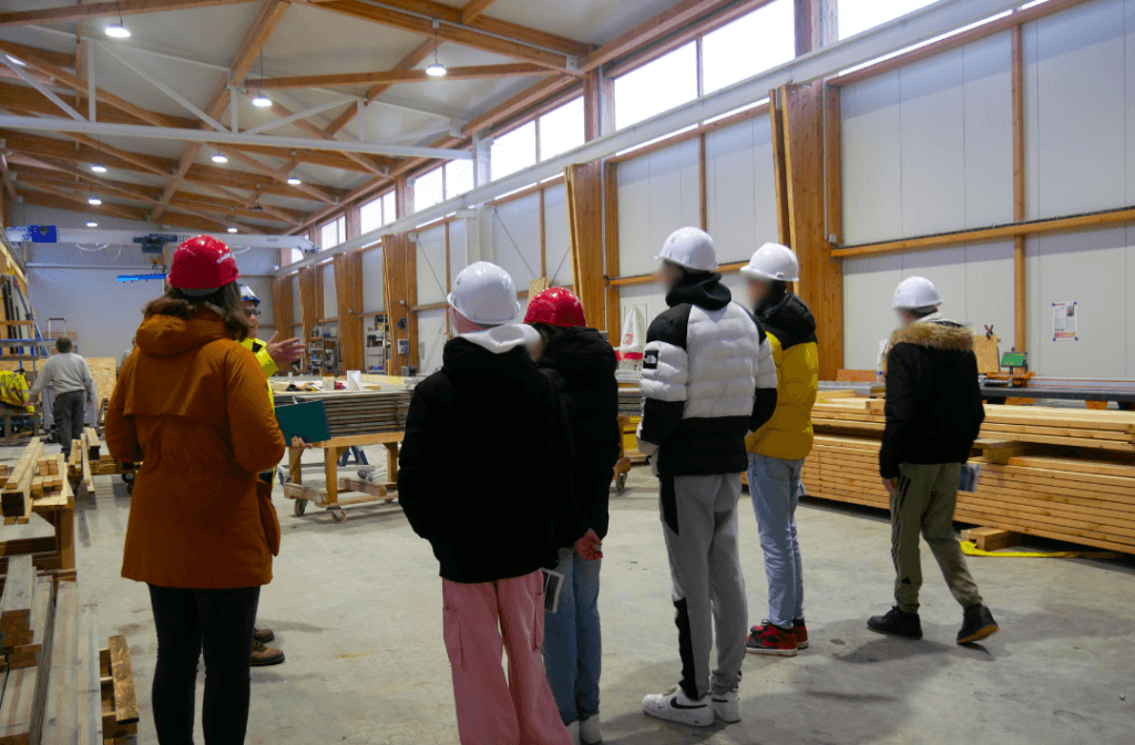 La visite s’est poursuivie dans nos ateliers, où les collégiens ont exploré les métiers du bois, du béton et du maçonnage. Ils ont pu observer les processus de fabrication, découvrir les métiers techniques et comprendre l’importance de chaque étape dans la construction de nos projets.
