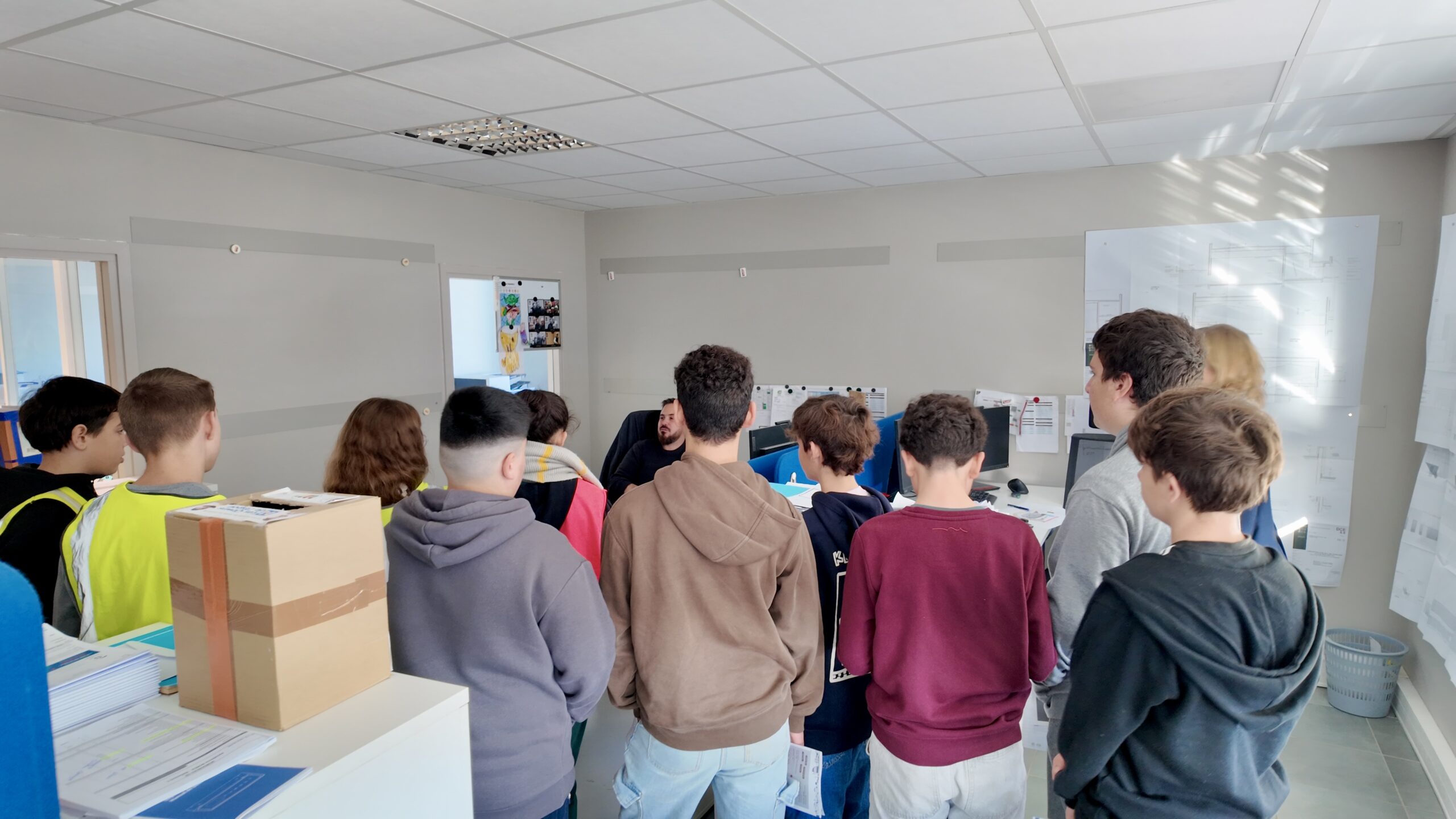 La visite s’est poursuivie dans les bureaux et ateliers, guidée par notre flyer QCM retraçant l’histoire de Boisseau Bâtiment et les étapes clés du parcours. Les collégiens ont également répondu à des QCM métiers afin de vérifier leur compréhension et nourrir leur curiosité.