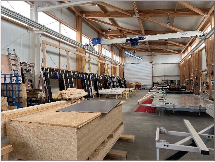 Les équipes ont assuré la mise en place des portails, des portes de service et des dispositifs de désenfumage, ainsi que l’ensemble des installations électriques et d’éclairage. Enfin, l’intégration du process et de la chaîne de production a permis de rendre l’atelier pleinement opérationnel.