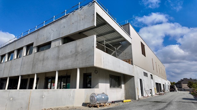 Le projet repose sur une structure béton banché pour les locaux techniques et le lavoir, avec des planchers adaptés pour résister aux charges industrielles. Les menuiseries en aluminium à rupture de pont thermique assurent performance énergétique et confort, tandis que les façades en double peau combinent isolation thermique, acoustique et bardage esthétique. La conception-réalisation permet d’intégrer le process industriel, les lots techniques et les finitions de manière simultanée, illustrant l’expertise de Boisseau Bâtiment en construction industrielle durable et hospitalière.