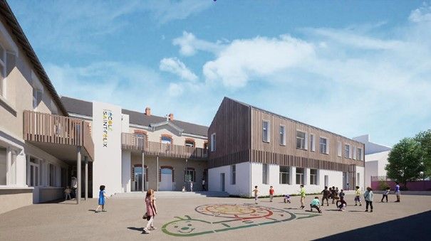 Boisseau Bâtiment réalise l’extension et la réhabilitation de l’école maternelle Saint-Félix à Nantes. Suite à un incendie, le projet comprend la création de nouvelles salles de classe, d’un réfectoire, de vestiaires et de salles de réunion pour les enseignants, tout en rénovant les bâtiments existants. L’opération combine construction traditionnelle et travaux de gros œuvre, avec une coursive et une cage d’ascenseur permettant de répondre aux normes PMR. Les façades sont également traitées avec des enduits adaptés, garantissant durabilité et confort pour les usagers.