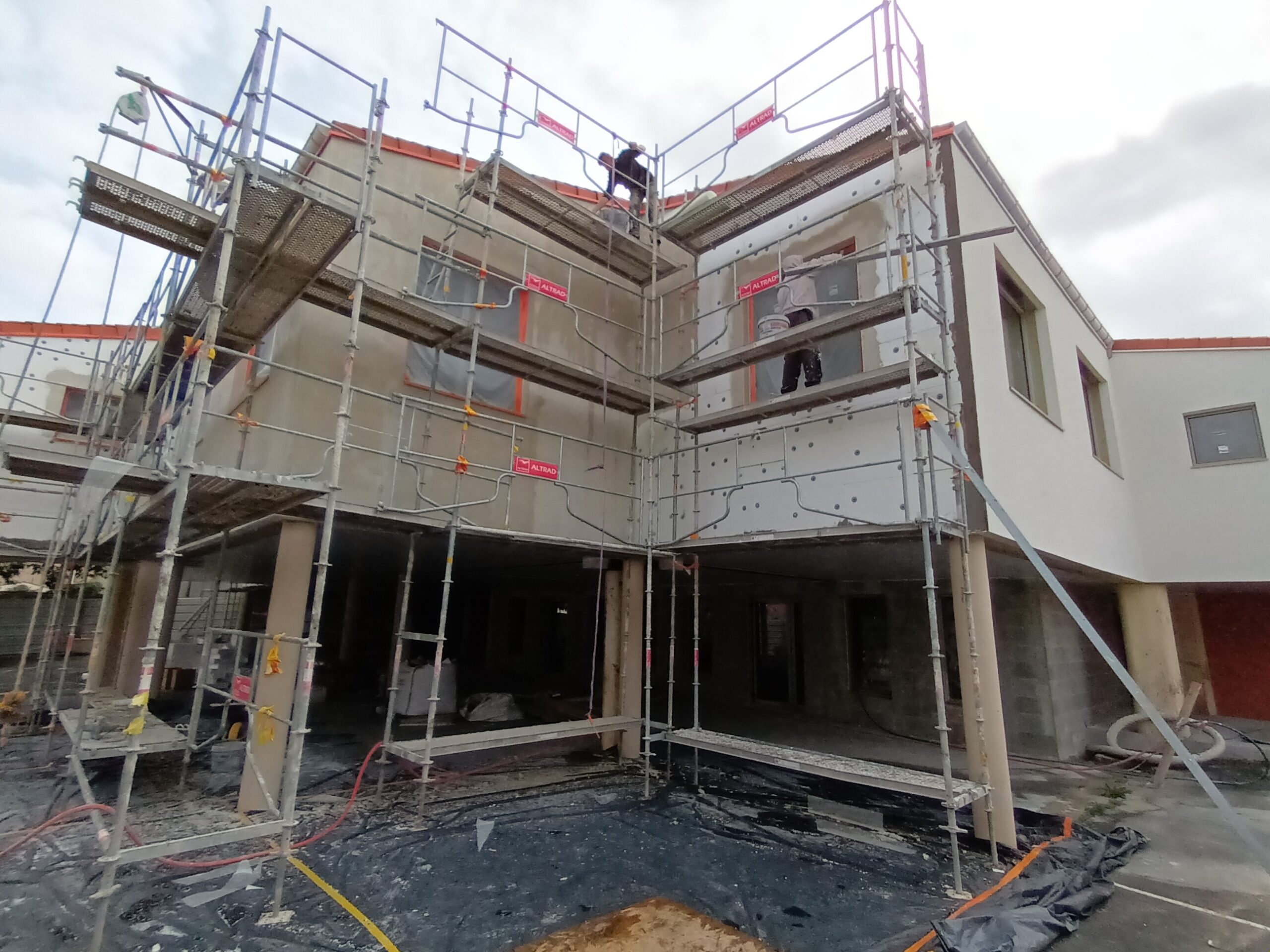 Boisseau Ravalement est intervenu à Mortagne-sur-Sèvre (Vendée) pour la réalisation d’une isolation thermique par l’extérieur (ITE) sur les façades de l’École DESNOS. Ce projet visait à améliorer la performance énergétique du bâtiment scolaire, tout en assurant la protection durable des façades et un rendu esthétique soigné, adapté à un établissement recevant du public.